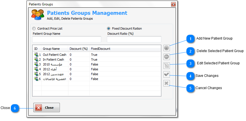 dialog window you can manage patients groups by add, edit, or
